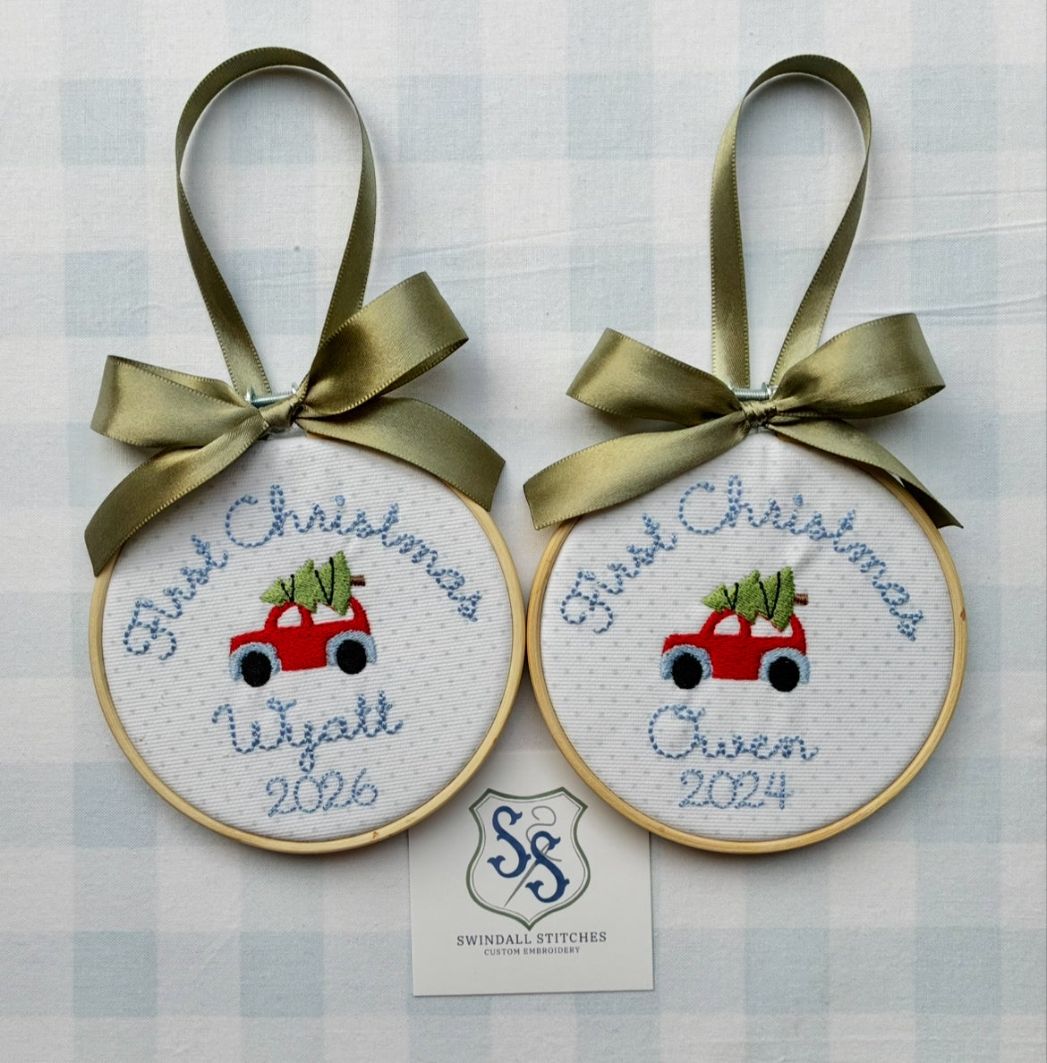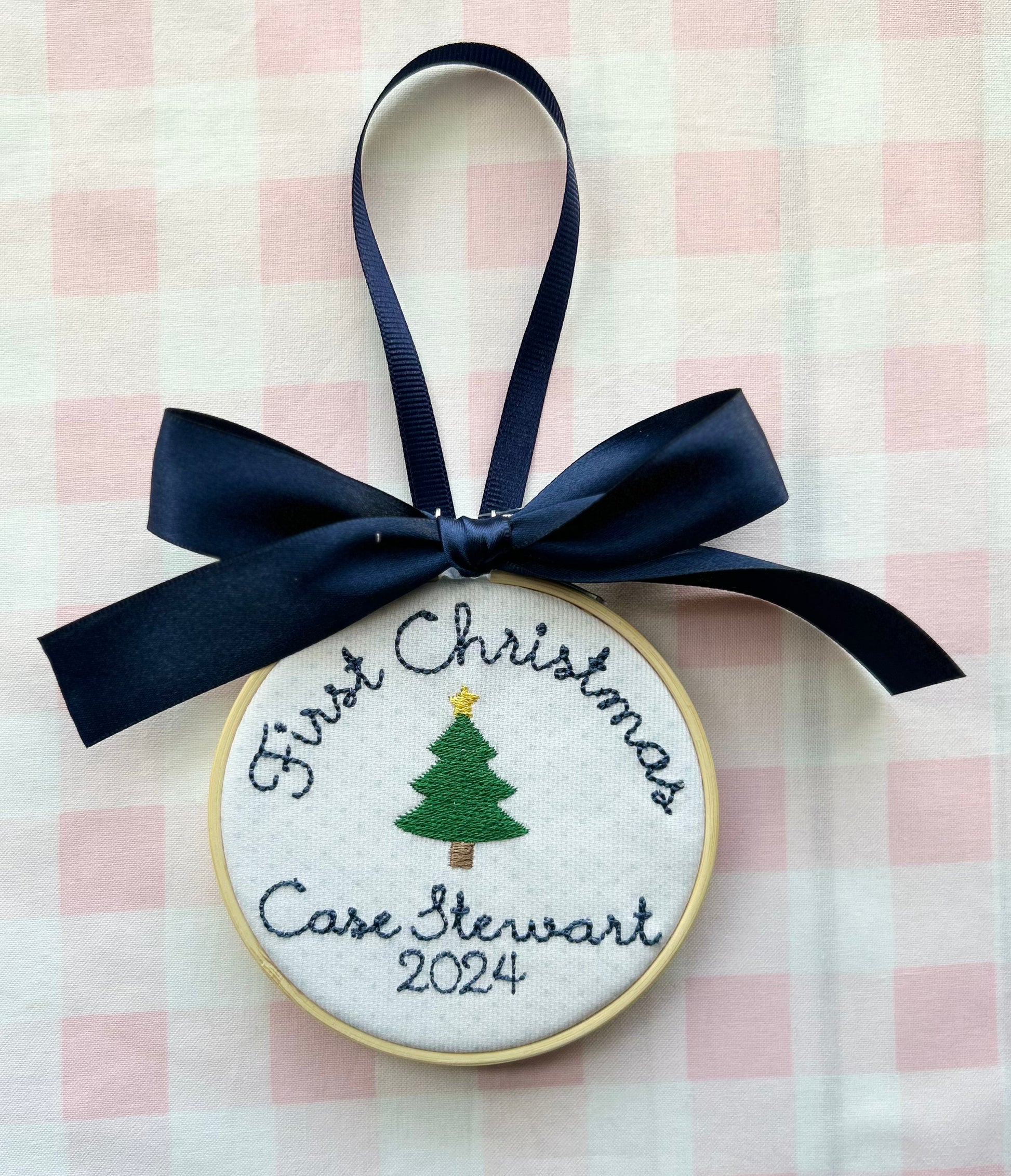 Cursive font will be used for girl ornaments and simple block will be used for boy ornaments unless otherwise specified.